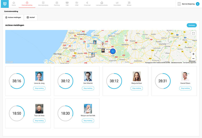 Omdat bijna alle communicatie via de app verloopt, leg je de verantwoordelijkheid om actie te ondernemen bij de surveillant. Je krijgt alleen een melding wanneer de surveillant niet reageert.